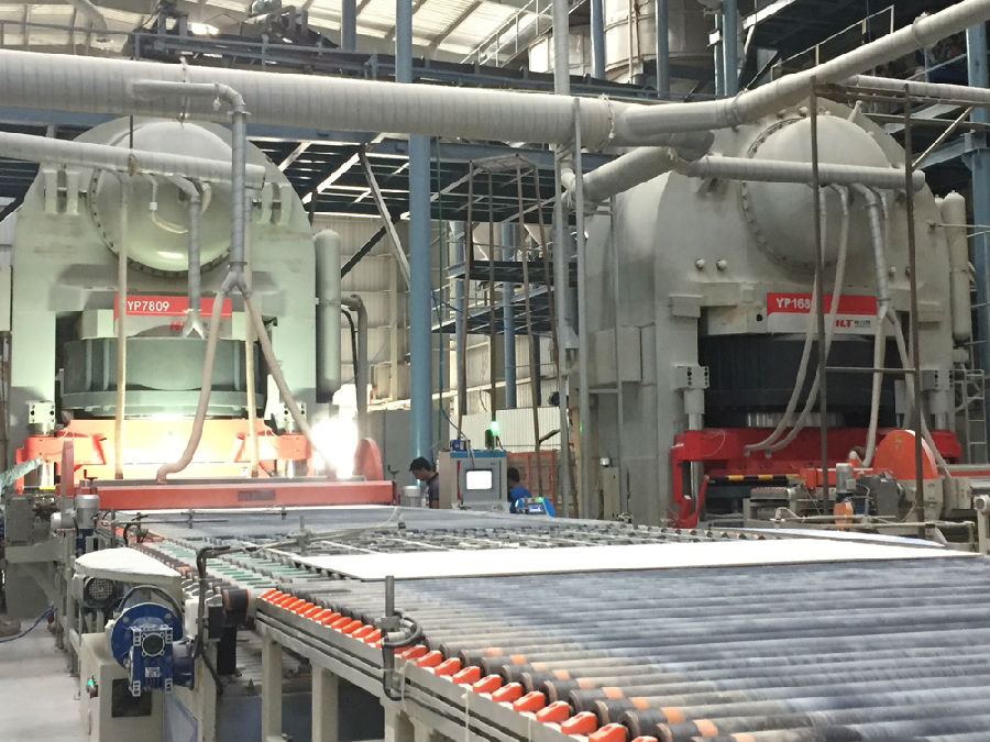 The project of Nextile boasts a YP16800 press, which is widelyknown in the industry as the King of Press for Slab Tiles, a hot-sale YP7809, aDLT EL-series five layer dryer together with a DLT DRK-series narrow-body kilnwhich are both specialized for ceramic slab production as well as otherauxiliary equipment, able to produce various sizes of ceramic slabs, such as1200x2400mm, 800x1600mm, 900x1800mm, etc.