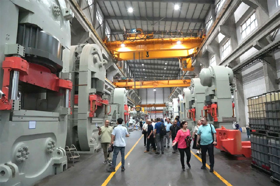 The delegations were given an in- depth tourof HLT&DLT’s three major production bases, including the Raw MaterialMachinery Manufacturing Workshop, the Firing Machinery Manufacturing Workshop,the Digitalized Intelligent Manufacturing Workshop, and the Forming MachineryManufacturing Workshop, They also visited the cutting-edge Smart Storage, SmartOperations Center, and Digitalized Exhibition Hall.
