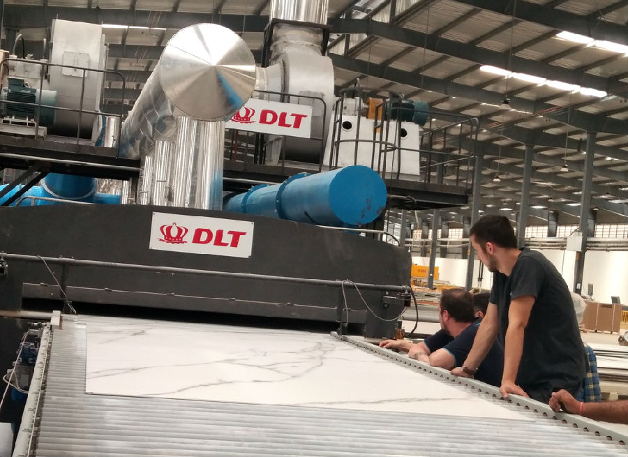 Being put in use in April, 2019, the production line in Ibizaboasts a 220.5 meter long narrow body roller kiln and a 44.8 meter long self circulationfive layer dryer from DLT, specially designed for slab tiles, able to producefrom 1200*2400mm up to 1600mm*3200mm tiles with thickness of 3mm, 6mm and 12mm.The designed capacity of the production line is 4000 square meters per day.