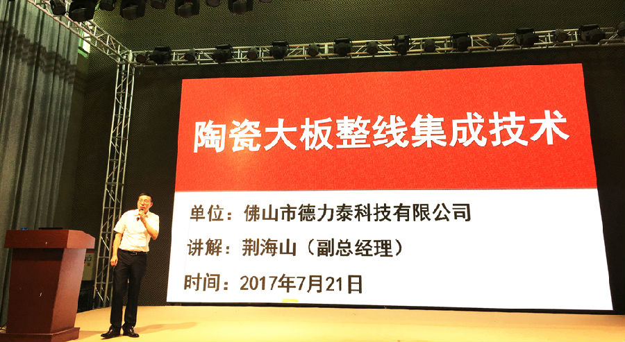 2017年7月21日,德力泰公司副總經(jīng)理荊海山工程師,在佛山市陶瓷學(xué)會舉辦的第九期高層次人才培訓(xùn)班上,做了《陶瓷大板整線集成技術(shù)》專場技術(shù)講座。