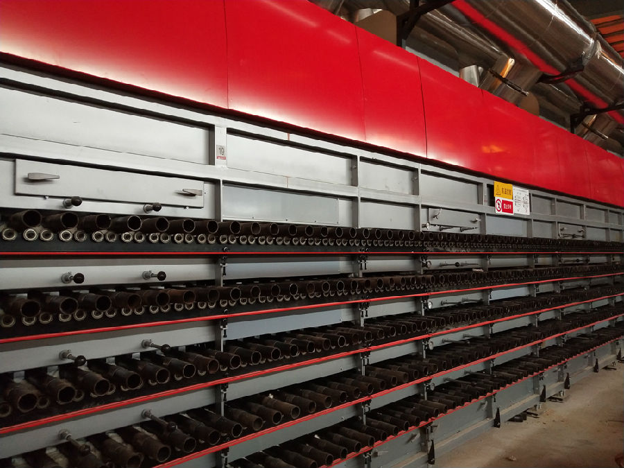 該條雙零吸水率全拋釉生產(chǎn)線配有一條德力泰最為走俏的明星產(chǎn)品EM系列五層干燥、一條超級(jí)節(jié)能寬體輥道窯和輔機(jī)、釉線全套裝備,主要生產(chǎn)800*800mm全拋釉磚。