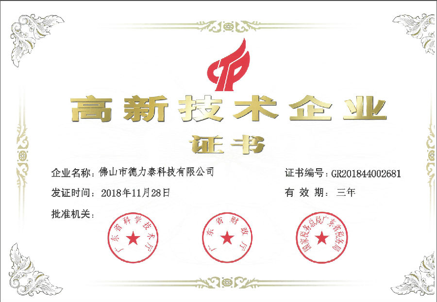 廣東省科學(xué)技術(shù)廳、廣東省財政廳、國家稅務(wù)總局廣東省稅務(wù)局于4月26日公布了《廣東省2018年第一批高新技術(shù)企業(yè)名單》和《廣東省2018年第二批高新技術(shù)企業(yè)名單》,佛山市德力泰科技有限公司順利進入了第一批高新技術(shù)企業(yè)名單中,并于近日收到了頒發(fā)的國家“高新技術(shù)企業(yè)證書”和牌匾。同時獲得高新技術(shù)企業(yè)資格的還有新明珠、金意陶等企業(yè)。