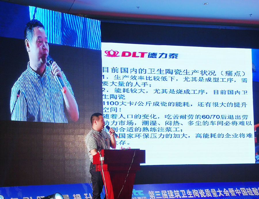 隨著我國經(jīng)濟邁入高質(zhì)量發(fā)展的新時代,我國建筑衛(wèi)生陶瓷產(chǎn)業(yè)面臨更多的機遇與挑戰(zhàn)。此次建筑衛(wèi)生陶瓷質(zhì)量大會為來自全國各地本領(lǐng)域內(nèi)的同仁搭建了一個學習與交流的廣闊平臺,與會的各位專家教授在這個平臺上為大家?guī)韲鴥?nèi)外建筑衛(wèi)生陶瓷領(lǐng)域的最新進展動態(tài),分享最新經(jīng)驗、介紹最新成果。國內(nèi)銷售總監(jiān)戴躍飛就此在大會上以《陶瓷工業(yè)窯爐節(jié)能新技術(shù)暨潔具生產(chǎn)新技術(shù)》為題做了匯報,介紹了力泰品牌從原料到成型及燒成整線生產(chǎn)的工藝流程,及窯爐研發(fā)體系和國內(nèi)外應用情況。
