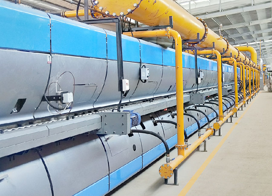 為能更好地給客戶帶來(lái)經(jīng)濟(jì)效益和社會(huì)效益,窯爐應(yīng)用了德力泰自主研發(fā)的專利技術(shù)DHR余熱回收系統(tǒng)、KHI保溫系統(tǒng)等,實(shí)現(xiàn)了在不用煙氣、不點(diǎn)燃燒機(jī)的情況下完全利用窯爐余熱,可為窯前干燥和五層干燥以及釉線干燥提供足夠的熱源,不但密封性好干燥效率也高。加上PPC超級(jí)節(jié)能燃燒系統(tǒng)、KPS窯墻保護(hù)系統(tǒng)、DMA走磚系統(tǒng)的共同配合,既保證了設(shè)備的正常運(yùn)轉(zhuǎn)和穩(wěn)定的品質(zhì),又能達(dá)到最大限度的節(jié)能效果,以滿足在新市場(chǎng)需求下的不同客戶的要求及產(chǎn)品結(jié)構(gòu)。