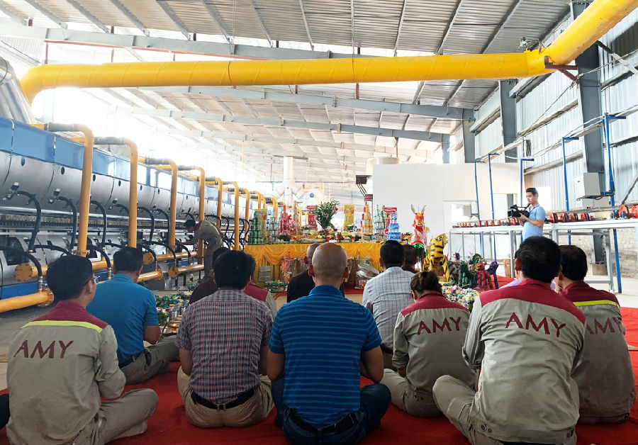 上午八點十五分,在越南亞美舉行了第4期項目的點火儀式。點火儀式由德高望重的高僧主持,按當?shù)貍鹘y(tǒng)風俗有序進行。隨著第一把火的熊熊燃燒,在場人員懷著一顆虔誠的心,共同祝福亞美就像這窯火一樣,紅紅火火、越燒越旺,同時也標志亞美產(chǎn)能將得到大幅度的提升,可進一步增強產(chǎn)品的市場競爭力。