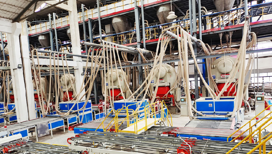 該項目引進(jìn)了德力泰一條工業(yè)“4.0能效標(biāo)桿數(shù)智時代”DFC燒成窯(W3150/L407.4M)、一條EM系列高效節(jié)能六層干燥器。按設(shè)計生產(chǎn)規(guī)格為800*800*10.5mm的高品質(zhì)全拋釉磚,產(chǎn)量3.6萬m2/天;生產(chǎn)規(guī)格為400*800*7.5mm的高端中板產(chǎn)品,設(shè)計產(chǎn)量4萬m2/天。