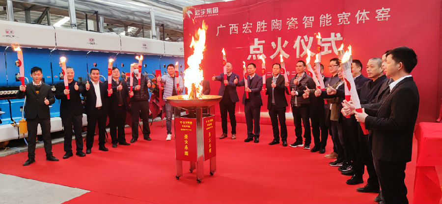 2022年2月10日(農(nóng)歷正月初十)上午吉時,宏宇集團(tuán)廣西生產(chǎn)基地宏勝陶瓷在集團(tuán)副總經(jīng)理兼生產(chǎn)基地總經(jīng)理譚鋁光、廣西宏勝基地總經(jīng)理李勇的率領(lǐng)下,為德力泰承建的全拋釉新生產(chǎn)線舉行了隆重的點火儀式。