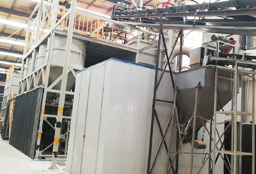 該整廠項(xiàng)目含原料車間干法制粉工藝、智能化配料系統(tǒng)、壓機(jī)自動(dòng)化機(jī)械手、一條DRK燒成窯、一條單層自循環(huán)干燥窯、360°窯尾轉(zhuǎn)彎系統(tǒng)及釉線等成套輔機(jī)都是德力泰個(gè)性化設(shè)計(jì)、量身訂制的專用設(shè)備。不僅可用鎢尾礦、鎢渣生產(chǎn)300mm*300mm、300mm*600mm、厚度達(dá)50mm帶透水功能的新型廣場磚外,還可以生產(chǎn)100×100mm、100×200mm、200×400mm、300×600mm厚度50-80mm的輕質(zhì)墻材磚,為當(dāng)?shù)劓u尾礦處理找到了一條新路徑,也填補(bǔ)了江西鎢尾礦利用技術(shù)的空白!