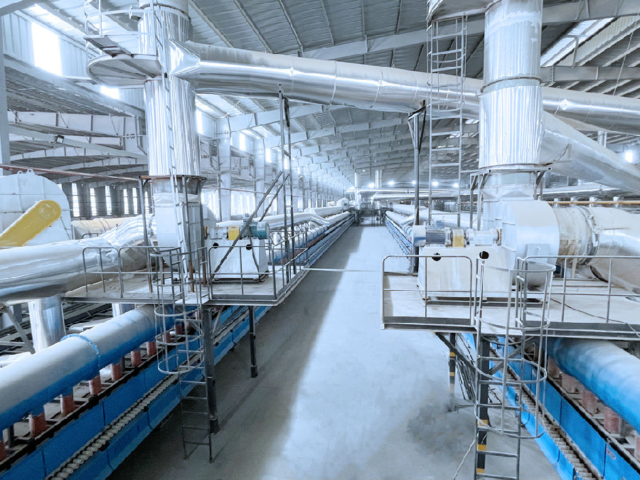 該項目引進了力泰品牌從制粉-成型-燒成的高端自動化能效標桿西瓦整廠裝備。分別含恒力泰科技四套60T節(jié)能間歇式球磨機、FaST系列ST800高效智能化噴霧塔及其他配套原料設備;恒力泰機械三臺YP2809自動液壓機;德力泰“4.0能效標桿數(shù)智時代”燒成窯(W3050/L247.8)組合及釉線輔機等設備。不僅滿足生產規(guī)格為310*410mm的高品質西瓦,還可兼顧生產500*500mm、600*600mm等規(guī)格上乘釉面地磚。設計產量1.8萬m2/天,是一條定位高端、技術領先、圍繞“雙碳”節(jié)能整套技術優(yōu)化升級的工業(yè)4.0專業(yè)生產線。