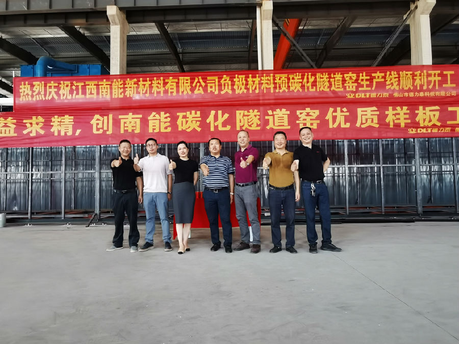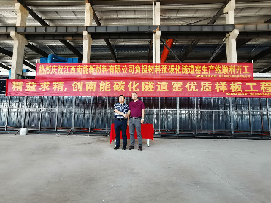 窯架排立、機器轟鳴,在響徹云霄的鞭炮聲中,由德力泰承建的兩條負極材料預碳化天燃氣隧道窯開工儀式順利舉行。攜手新賽道,踏上新征程,標志著德力泰正式進軍鋰電負極材料加工行業(yè)。