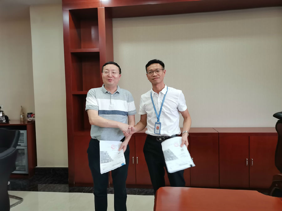 2020年6月9日,德力泰副總經(jīng)理荊海山與陶瓷行業(yè)巨頭新錦成集團(tuán)供應(yīng)鏈總監(jiān)李楊東,在新錦成集團(tuán)總部大樓成功簽約,雙方就新一輪的產(chǎn)品升級、籌建工業(yè)4.0能效標(biāo)桿專用巖板窯項目達(dá)成合作協(xié)議。