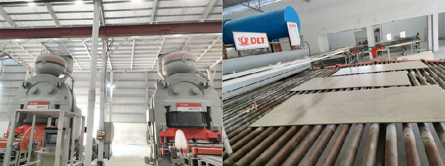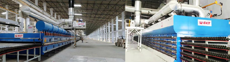 該生產(chǎn)線含恒力泰YP7890自動(dòng)液壓機(jī)1臺(tái),德力泰工業(yè)“4.0能效標(biāo)桿數(shù)智時(shí)代”DFC燒成窯、DHD-EM系列五層干燥器、DHD-E1釉線干燥器、DHD-E1-A窯前干燥器及成套輔機(jī)。主要生產(chǎn)800*800mm、800*1600mm等規(guī)格,厚度 9 -12 mm的全拋釉磚,日產(chǎn)量1.5萬(wàn)m2。