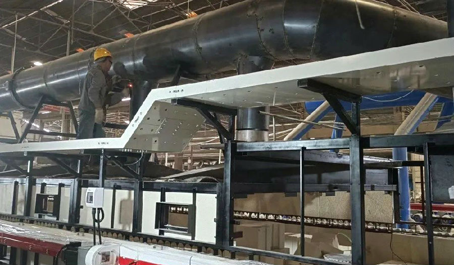 該項(xiàng)目包括恒力泰科技PST28000型智能噴霧塔 ,恒力泰機(jī)械三臺(tái)創(chuàng)新碩果LT6809自動(dòng)液壓機(jī)、一臺(tái)YP8390自動(dòng)液壓機(jī),德力泰4.0大板高端燒成窯(W3100/L378M)和DHD-EM6六層自循環(huán)干燥器組合。在雙方團(tuán)隊(duì)的通力合作下,現(xiàn)場(chǎng)技術(shù)員及施工團(tuán)隊(duì)進(jìn)入了緊張有序的安裝階段,預(yù)計(jì)2023年3月點(diǎn)火投產(chǎn)。