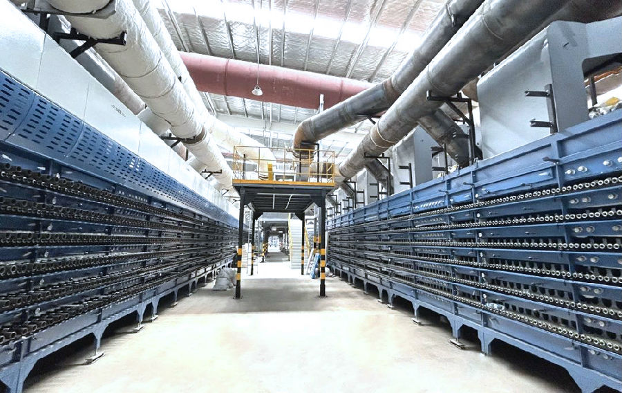 熱工裝備是德力泰一貫堅(jiān)持高標(biāo)準(zhǔn)嚴(yán)要求的工業(yè)“4.0能效標(biāo)桿數(shù)智時(shí)代”燒成窯(W3150/L411.6M)、一條DHD-EM6層自循環(huán)干燥器、釉線干燥器、窯前干燥器及成套輔機(jī)設(shè)備。在運(yùn)用了先進(jìn)窯爐數(shù)字智能化管控系統(tǒng)DDI4.0-A的同時(shí),還配置了德力泰自主研發(fā)的多項(xiàng)專利技術(shù),投產(chǎn)后將展現(xiàn)能耗低、效率高、產(chǎn)量大、穩(wěn)定性強(qiáng)等突出優(yōu)勢,且在創(chuàng)新和質(zhì)量上都有長足進(jìn)步。主要生產(chǎn)規(guī)格為800*800mm、600*1200mm、750*1500mm,厚度10mm的全拋釉產(chǎn)品,設(shè)計(jì)產(chǎn)量35000m2/天。高效賦能諾貝爾繼續(xù)打造高品質(zhì)瓷磚,滿足人們對高品質(zhì)生活的環(huán)境需求。