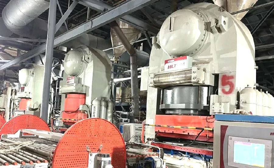 為能滿足消費升級與人群體驗的品質化需求,迎合更高端化的市場趨勢,第二條現(xiàn)代化技改整線中的核心裝備經過調研對比后攜手力泰陶機,包括恒力泰暢銷機型YP4009自動液壓機四臺,德力泰一條工業(yè)“4.0能效標桿數智時代”DFC燒成窯(W3100/L336M)、一條EM系列高效節(jié)能自循環(huán)四層干燥器及窯前干燥器。主要生產規(guī)格為600*600mm、800*800mm、600*1200mm,厚度8-10mm的高品質仿古磚,設計產量33000 m2/天。