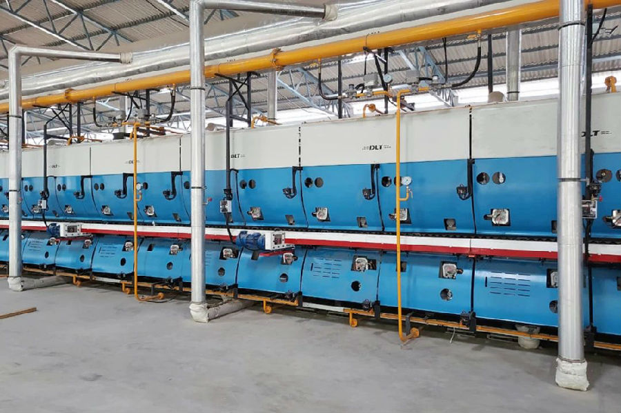 據(jù)悉,該窯長363.3米,刷新了當(dāng)前印度輥道窯長度紀(jì)錄,也是德力泰在印度市場創(chuàng)新采用拱頂設(shè)計(jì)的輥道窯。相比于普通平吊頂窯爐內(nèi)空更大,有利于窯內(nèi)煙氣的流動,可滿足大產(chǎn)量快燒的生產(chǎn)需要。同時,拱頂設(shè)計(jì)有助于減少窯爐截面溫差,提高產(chǎn)品的燒成質(zhì)量。配置DHR、KHI、PPC等多項(xiàng)專利技術(shù),具有顯著的低碳節(jié)能、綠色環(huán)保、智能高效等優(yōu)勢。該生產(chǎn)線計(jì)劃近期點(diǎn)火。