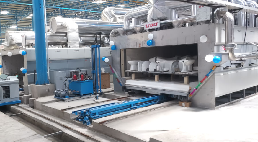 旗下專業(yè)生產(chǎn)高端衛(wèi)浴產(chǎn)品的Kerovit Global企業(yè),也是一家以高度自動化、智能化生產(chǎn)管理模式著稱的創(chuàng)新型和技術(shù)引領(lǐng)型衛(wèi)浴產(chǎn)品綜合型企業(yè),對生產(chǎn)設(shè)備的要求極為嚴(yán)苛,其自動化程度、環(huán)保要求、產(chǎn)出品質(zhì)都是翹楚水平。本次投產(chǎn)的隧道窯與梭式窯,是德力泰在第一條潔具隧道窯成功投產(chǎn)并運(yùn)行良好的基礎(chǔ)上,進(jìn)行科學(xué)優(yōu)化、高端配置、嚴(yán)格按國際環(huán)保要求全新打造的高品質(zhì)窯爐,搭載了專利技術(shù)DBS節(jié)能燃燒系統(tǒng)。主要生產(chǎn)各類衛(wèi)陶精品,供應(yīng)印度國內(nèi)及國外高端消費(fèi)群體。其中隧道窯產(chǎn)量為2250件/天,梭式窯容積為144m3。