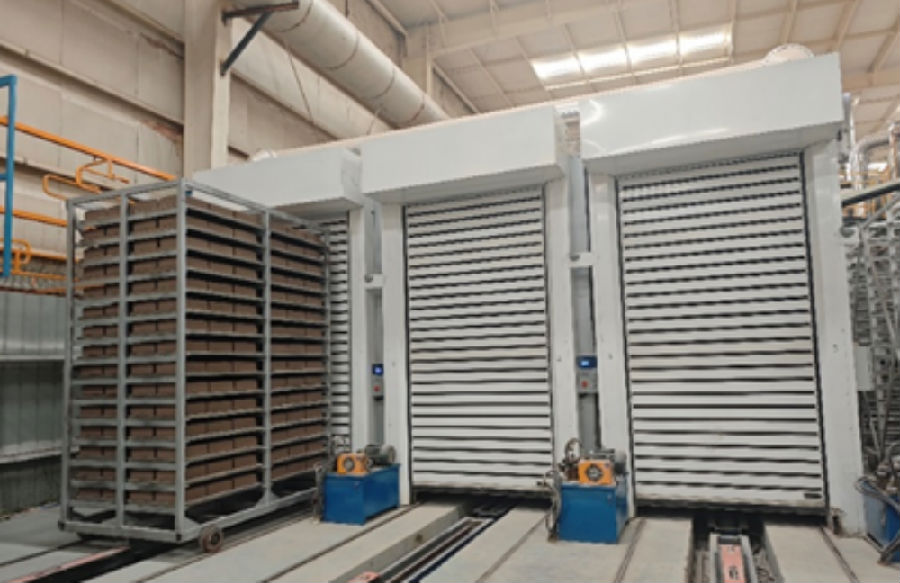 根據(jù)場(chǎng)地面積設(shè)計(jì)三通道或多通道干燥窯,將裝滿的干燥車(chē)通過(guò)步進(jìn)機(jī)構(gòu)送入多通道干燥窯。該設(shè)備前后設(shè)有窯門(mén),以保證窯內(nèi)的壓力、溫度和濕度滿足生產(chǎn)需求,熱源通過(guò)旋風(fēng)系統(tǒng)均勻輸入窯內(nèi)。采用窯爐余熱干燥,實(shí)現(xiàn)零能耗。具有綠色節(jié)能、占地面積小、干燥效率高等優(yōu)勢(shì)。已廣泛應(yīng)用于耐火材料、電瓷、擠出磚瓦等諸多領(lǐng)域。