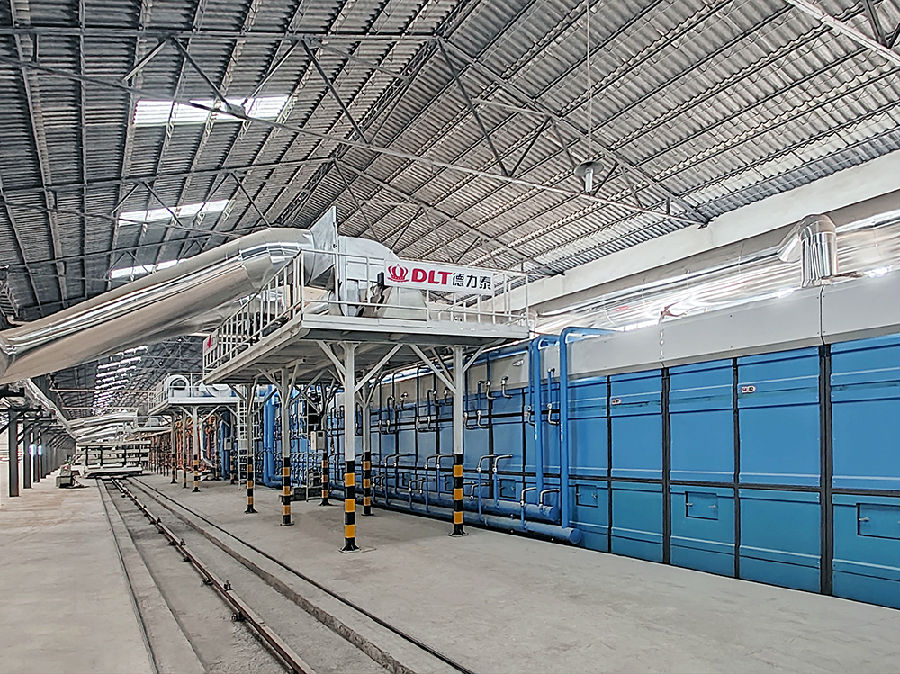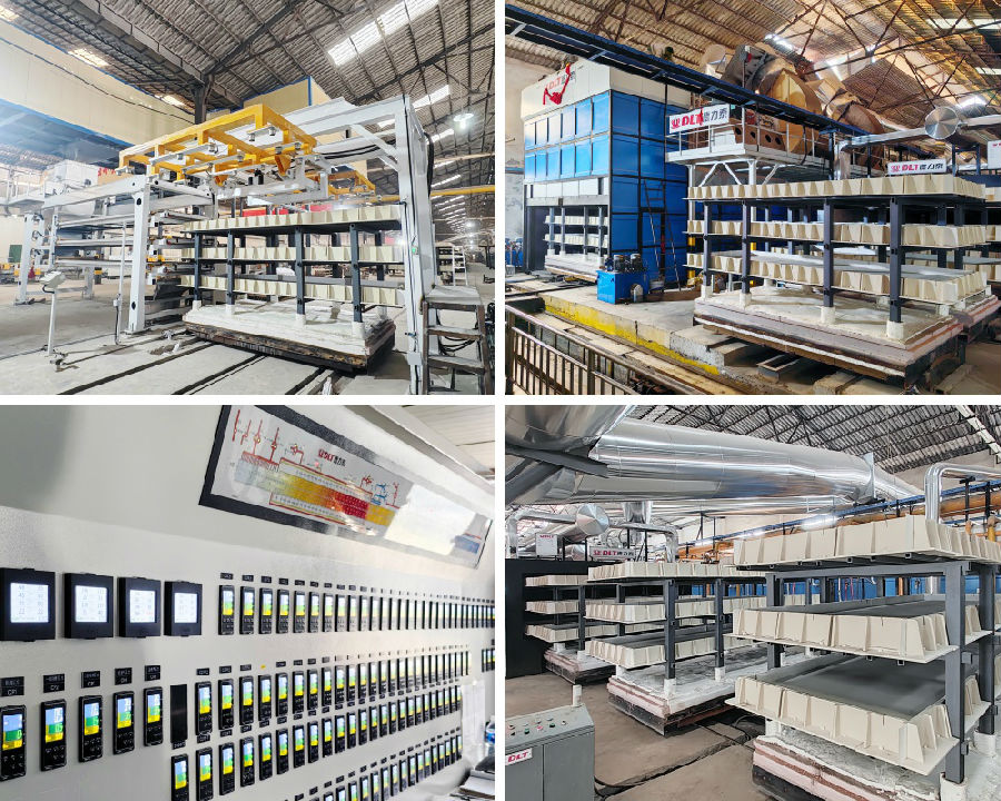 滿足連續(xù)式、大規(guī)模生產(chǎn)需求,且充分展現(xiàn)燒成穩(wěn)定、能耗低、自動化程度高等優(yōu)勢。與常規(guī)燒制2400mm或3000mm寬度產(chǎn)品的隧道窯相比,該隧道窯實現(xiàn)了關(guān)鍵突破,不僅刷新寬度紀錄,還可穩(wěn)定燒制3600×1200×150mm 規(guī)格的大尺寸雕刻板產(chǎn)品,設(shè)計產(chǎn)能336m3/ 天。